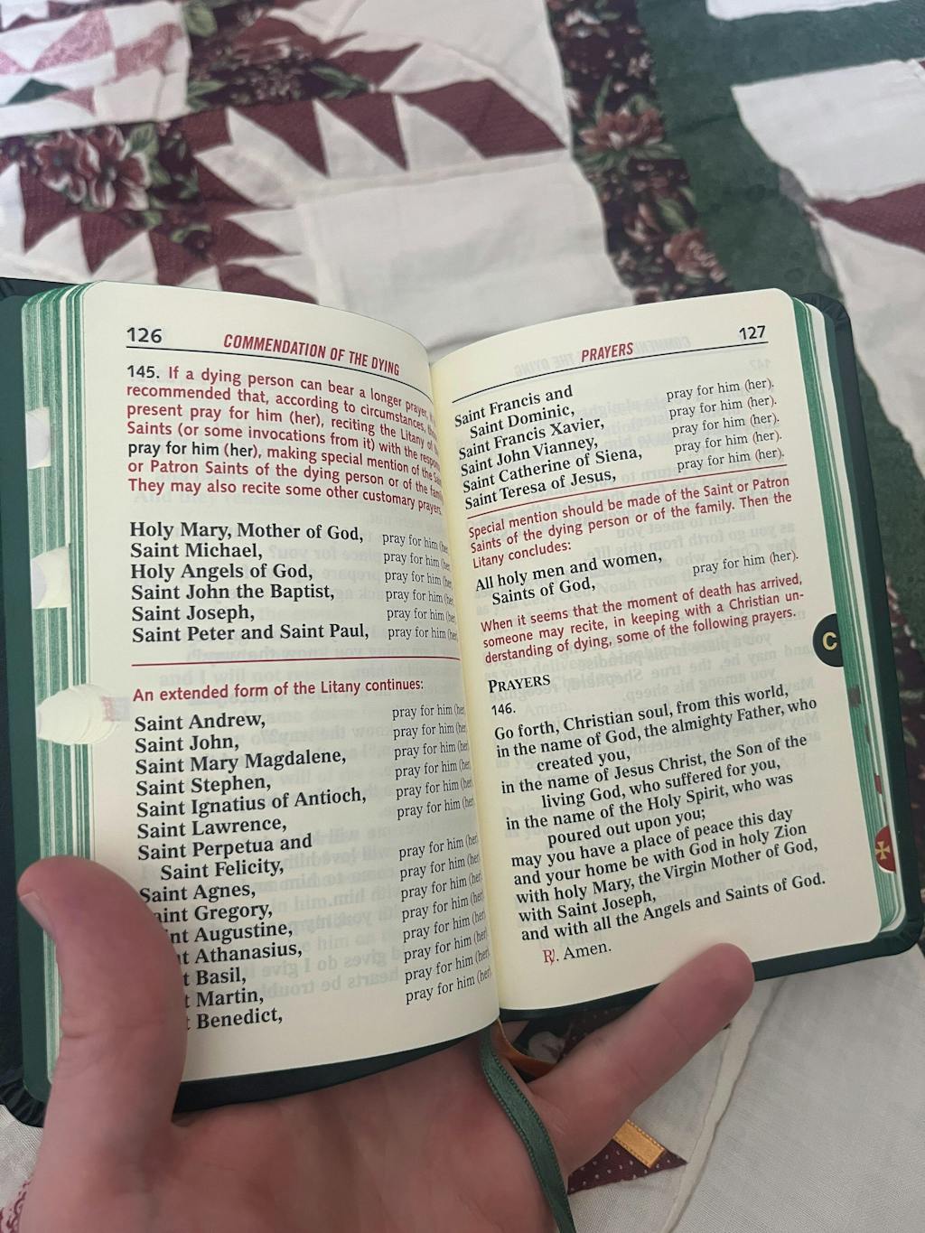 Esta es la edición oficial revisada del Orden de la Unción de los Enfermos y de su Atención Pastoral. Incluye todas las características mejoradas que los celebrantes conocen y confían en Catholic Book Publishing: tipografía grande y legible, impresa a dos tintas; una maquetación de eficacia comprobada que respeta los cambios de página funcionales; guardas de lujo; una cubierta resistente y dos cintas de raso para marcar el final. El papel crema, especialmente neutro al ácido, producido por fábricas de alta calidad y reconocidas, garantiza un alto nivel de opacidad y consistencia. La edición bilingüe de bolsillo también incluye páginas enfrentadas en inglés y español, así como un práctico índice con marcas en los bordes. 656 páginas. Tamaño 4 x 6 1/4.