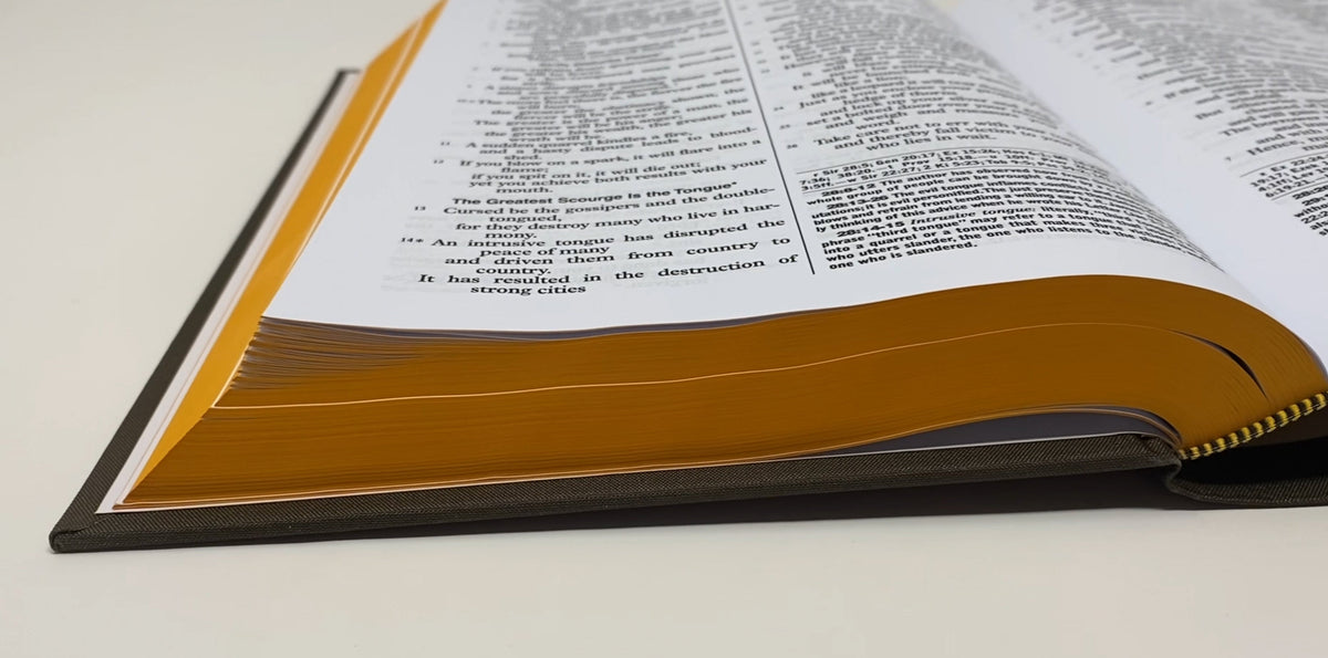 Each time a new edition is introduced or a Bible is reprinted, several samples from the printing undergo a thorough scrutiny to ensure that they meet our strict standards. The interior of the Bible is reviewed for density and readability of type, sharpness and color of the illustrations, correct use of margins and correct pagination.